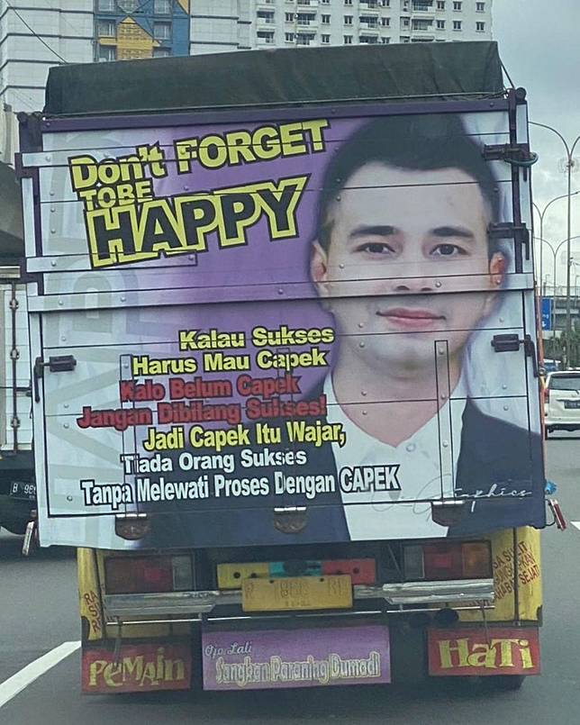 Sopir Truk Pasang Poster Wajah Raffi Ahmad Dengan Kata Motivasi Sukses Rizky Billar Panutanku