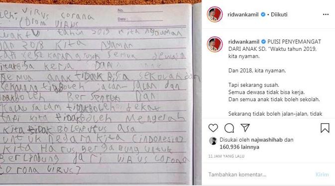 Ridwan Kamil Dapat Puisi Penyemangat Dari Anak Sd Seperti Apa Isinya Lifestyle Liputan6 Com