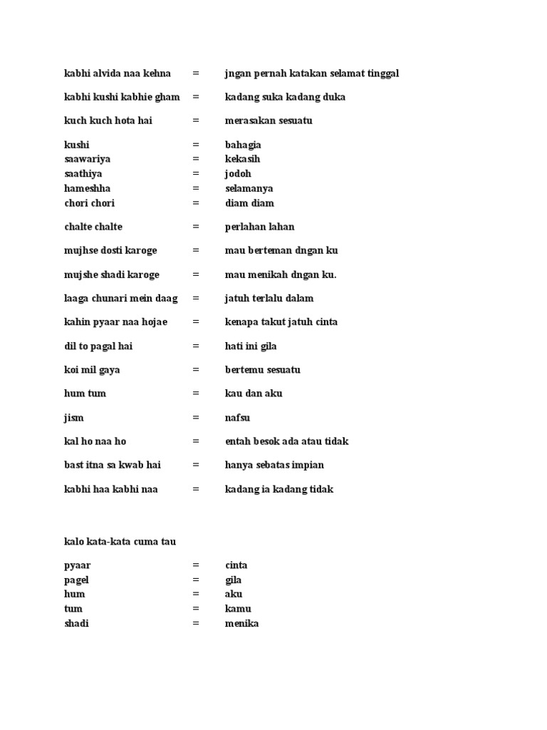 Jangan kau lupakan kata kata ini. Mujhe aapakee saadagee pasand hai Aku suka kesederhanaanmu 4. Terkadang ketika kita memiliki perasaan khusus kepada seseorang kita menjadi terlalu malu untuk berhadapan dengannya.