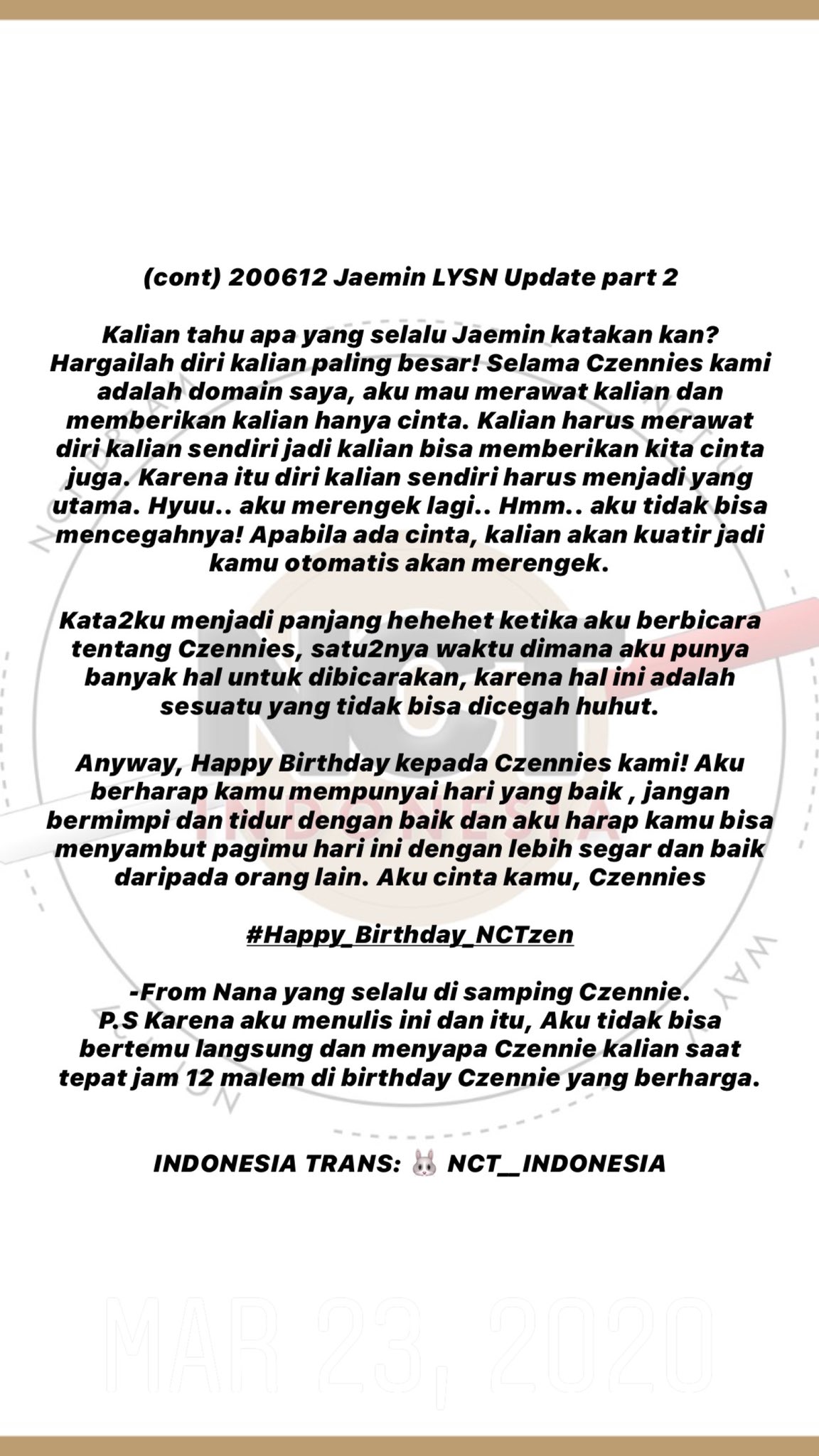 Nct Indonesia Fanbase On Twitter Trans 200612 Jaemin Lysn Update