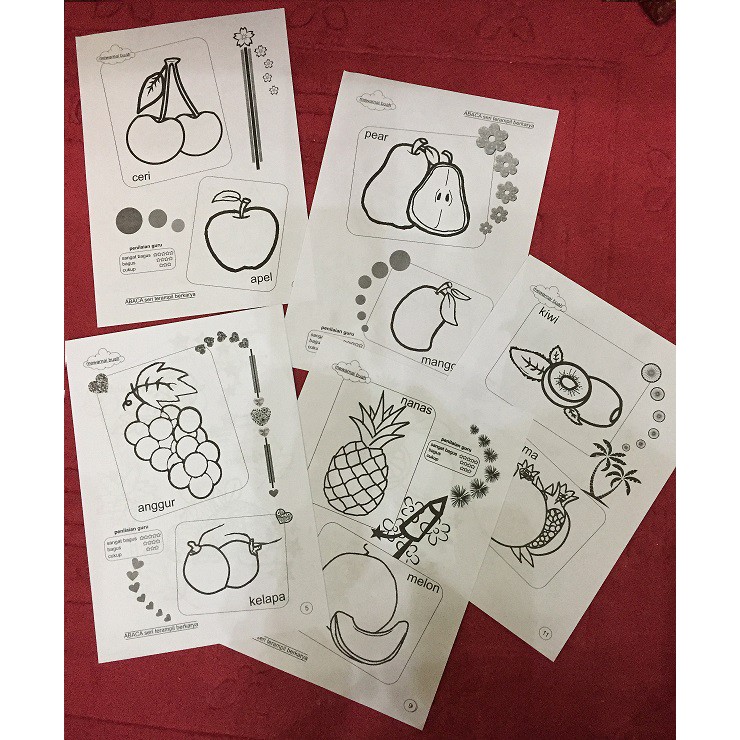 Worksheet Mewarnai Menempel Menggunting Seri Buah Buahan Untuk Tk A Shopee Indonesia
